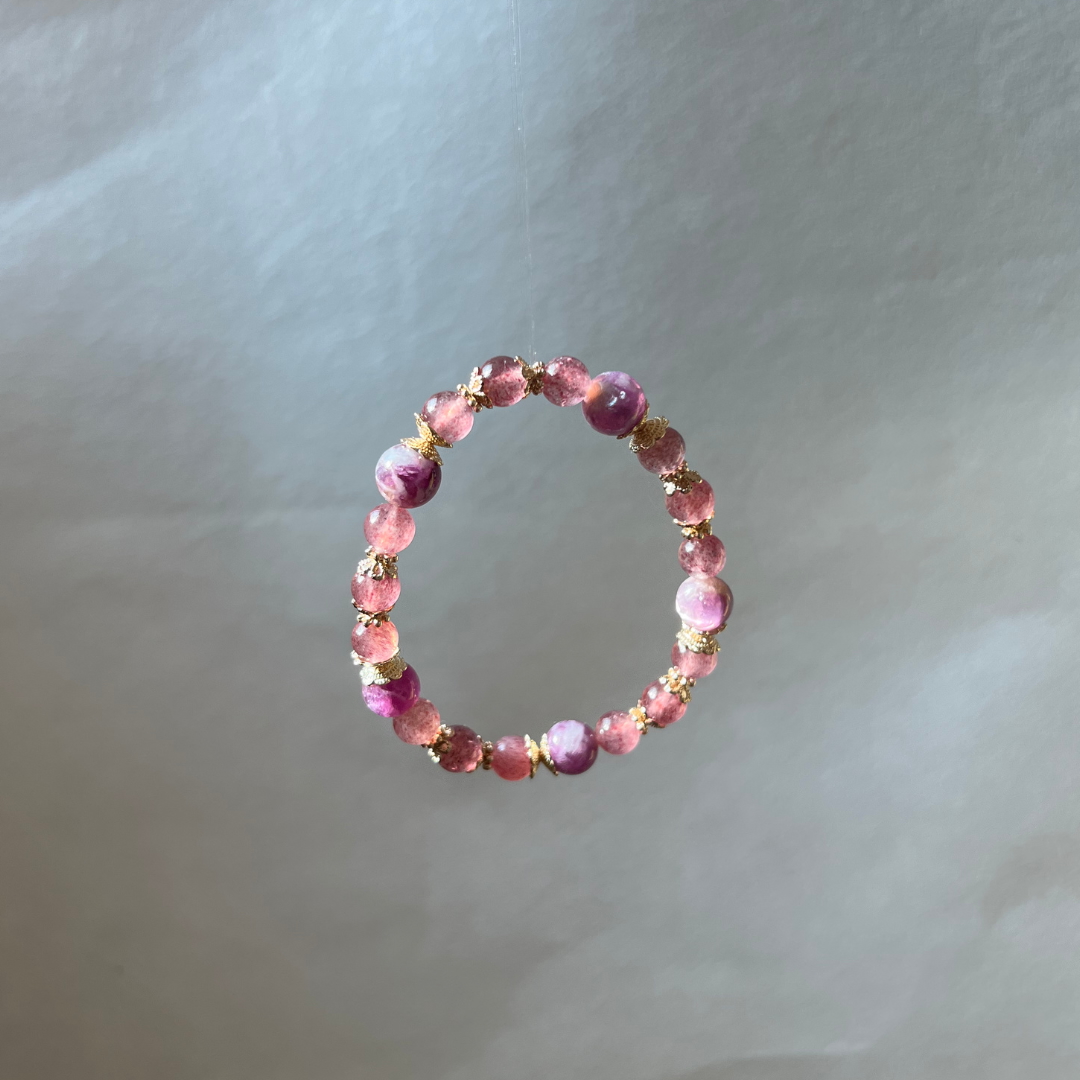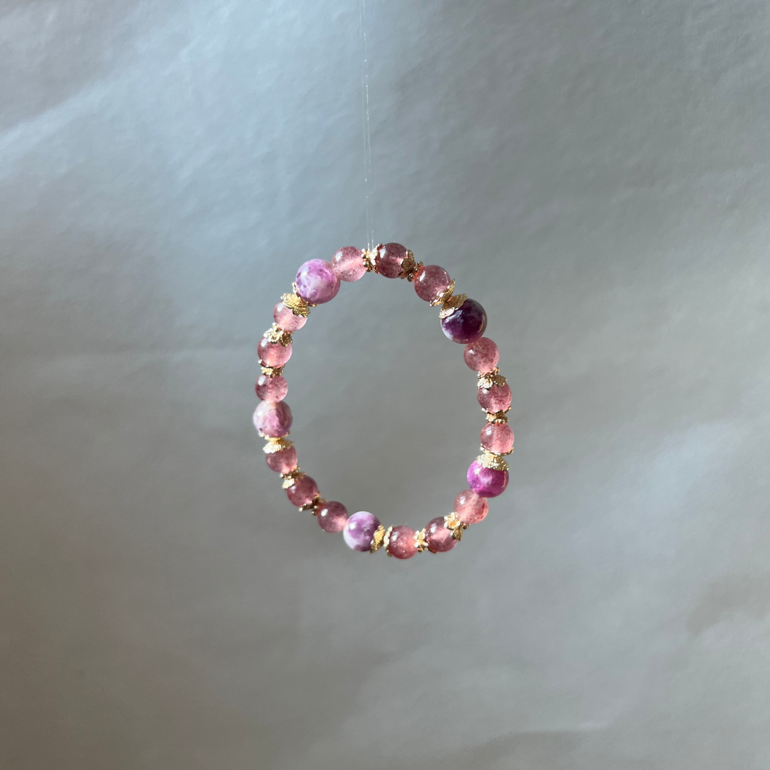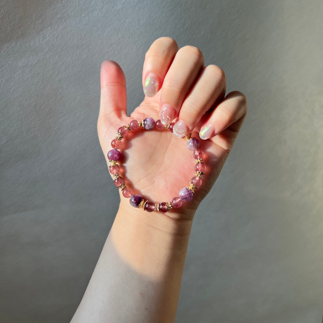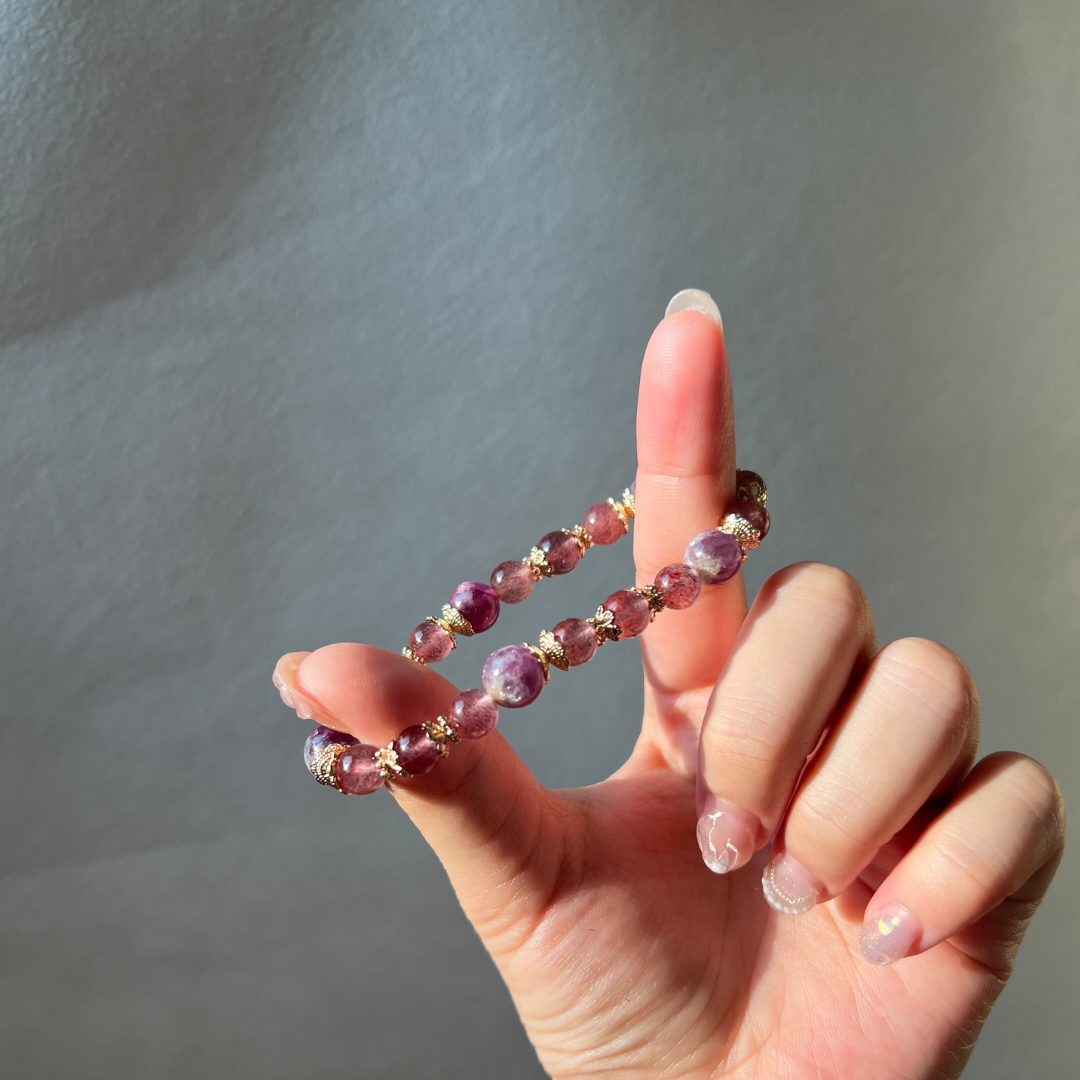 草莓晶珠徑 約7mm、紫鋰雲母珠徑 約8mm