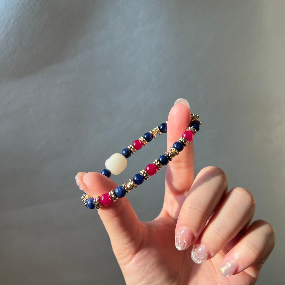 紅寶石珠徑 約6mm、藍紋石珠徑 約6mm、小菩提(牛奶色)